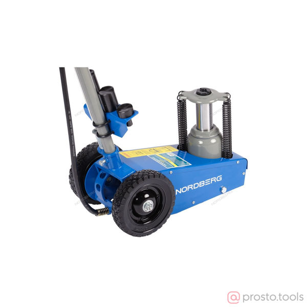 Подкатной домкрат с пневмоуправлением 22 т NORDBERG N3322L оснащается рукояткой с механизмом управления, а также разъемом, который позволяет подключать аппарат к сети сжатого воздуха. Специальная ручка для переноски обеспечивает легкость транспортировки. Колеса служат для маневренности оборудования. Модель отличается низким профилем, что дает возможность применять агрегат в труднодоступных местах.