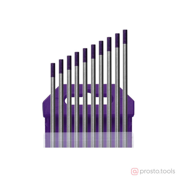 Электроды вольфрамовые WE-3, Ø 3,2 мм, цвет фиолетовый (цена указана за 1 электрод) в качестве легирования содержат оксиды нескольких редкоземельных металлов (лантана, иттрия, циркония), что обеспечивает особые преимущества в сравнении с торированными или лантанированными электродами: