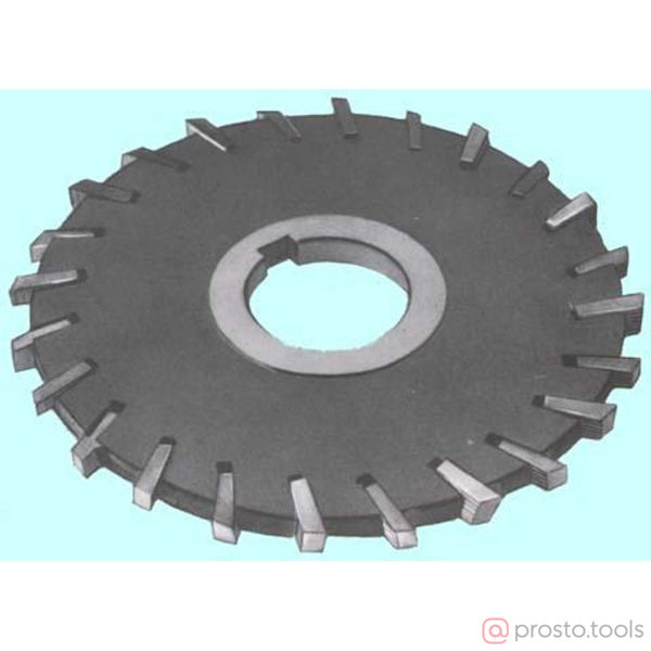 Фрезы дисковые трехсторонние со вставными ножами, оснащенными твердым сплавом, ГОСТ 5348-69 Предназначены для скоростного фрезеровани я пазов и уступов в деталях из чугуна и стали. Фрезы могут работать как отдельно, так и в наборах с другими фрезами. Плоские, рифленые ножи с напаянной пластиной из твердого сплава крепятся в пазе корпуса радиальным клином. На фрезах шириной до 18 мм в пазу корпуса радиальным клином крепятся плоские ножи без рифлений. Рифления в пазе выполняются осевыми. Износ ножей в радиальном направлении компенсируется перестановкой их на одно или несколько рифлений. Компенсация износа ножей по торцам осуществляется выдвижением их в осевом направлении до требуемого диаметра. После каждой перестановки ножей фреза предварительно шлифуется по наружному диаметру и торцам, а затем затачивается. Режущие кромки фрез наклонены к оси фрезы под углом 10°, при этом наклон смежных режущих кромок разнонаправленный. Это создает благоприятные условия резания и улучшает равномерность фрезерования. Ножи сменные. Для обработки стали используются ножи, оснащенные пластинами из твердого сплава марок Т15К6, Т14К8, Т5К10, для обработки чугуна - пластинами из твердого сплава марок ВК6, ВК8.
