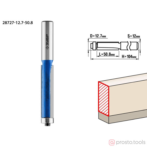 Фреза кромочная с нижним подшипником, D= 12,7мм, рабочая длина-50,8мм, хв.-12мм, d-12,7мм, ЗУБР Проф