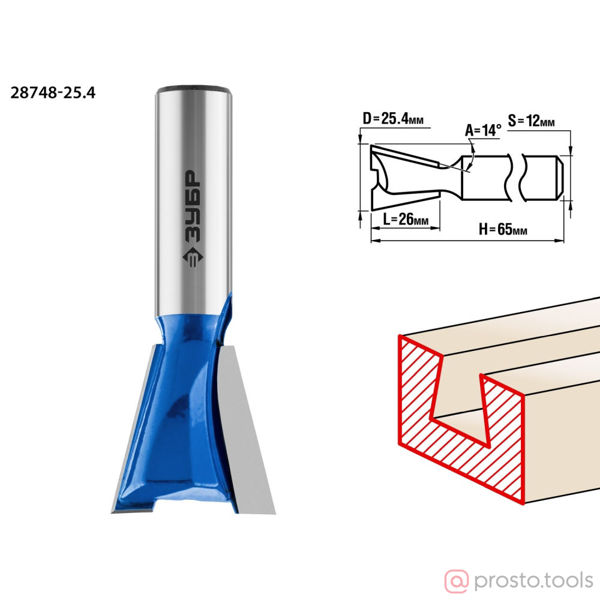 Фреза пазовая фасонная "Ласточкин Хвост", D= 25,4мм, рабочая длина-26мм, обратный угол-14 градусов,