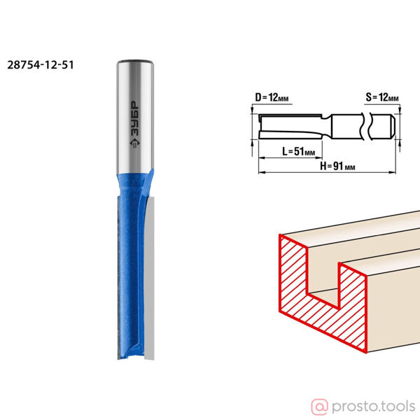 Фреза пазовая прямая, удлиненная, D= 12мм, рабочая длина-51мм, хв.-12 мм, ЗУБР Профессионал