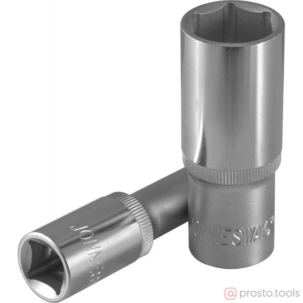 Основная разновидность рабочих насадок сборного слесарно-монтажного инструмента - это торцевая головка. Торцевые головки разделяются по геометрии рабочего профиля, по длине и по назначению. Такие инструменты обеспечивают наилучшие условия для приложения рабочего усилия по сравнению с другими видами инструмента для работы с внешними рабочими профилями. Торцевая головка выполнена из хромованадиевой стали, имеет накатку и полуматовое хромоникелевое покрытие. Изделие изготовлено по стандарту DIN 3124, полностью соответствует требованиям ГОСТа 25604-83. Область применения 6-гран. рабочий профиль считается наилучшим с точки зрения приложения максимальных рабочих нагрузок, передаваемых крепежной детали. Система инструмента с присоединительным квадратом 1/2" является сегодня самой универсальной, покрывая самый большой диапазон размеров от 8 до 36мм. За её рамками находятся лишь несколько самых мелких размеров и размеры крепежа, применяемые в крупногабаритных конструкциях. Данная система самая «богатая» по количеству разнообразных насадок, вариантов переходников и приводов и поэтому инструмент с присоединительным квадратом 1/2" является основой, на которой строится вся система сборного слесарно-монтажного инструмента предприятия. Торцевые головки 1/2" позволяют прилагать рабочие нагрузки, которые только в состоянии выдержать резьбовые соединения. 6-гран. торцевая головка увеличенной длины. Применяется при работе с крепежом на относительно высоких шпильках и заглубленных деталях. Торцевая головка выполнена из хромованадиевой стали, имеет накатку и полуматовое хромоникелевое покрытие.