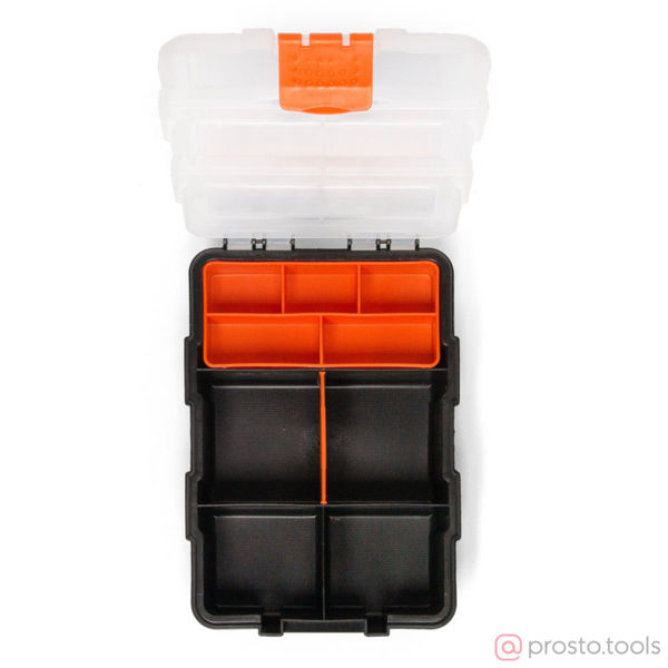 Удобное хранение метизов, мелких предметов, кабельных наконечников и гильз Тип изделия: органайзер Серия: ПРОФИ В комплекте: пластиковый органайзер|съемные модули|разделительные пластины Материал: АВS-пластик Особенности конструкции: прозрачная крышка|угол раскрытия крышки: 180˚