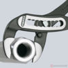 Больше производительности и удобства в работе по сравнению с обычными сантехническими клещами аналогичной длины: 9-ступенчатая регулировка и увеличенная на 30 % захватывающая способность. Хороший доступ к детали благодаря тонкой конструкции в области головки и шарнира. Функция смыкания губок, которая облегчает работу в узких и труднодоступных местах. Захватные губки со специально закаленными зубцами твердостью примерно 61 HRC: прослужат долго с надежным захватом. Коробчатый шарнир: высокая стабильность благодаря двум направляющим. Прочная конструкция, устойчивы к загрязнениям- особенно подходят для работ вне помещения. Специальный механизм предотвращает случайное защемление пальцев. Хромованадиевая сталь, кованая, многократно закалённая в масле.