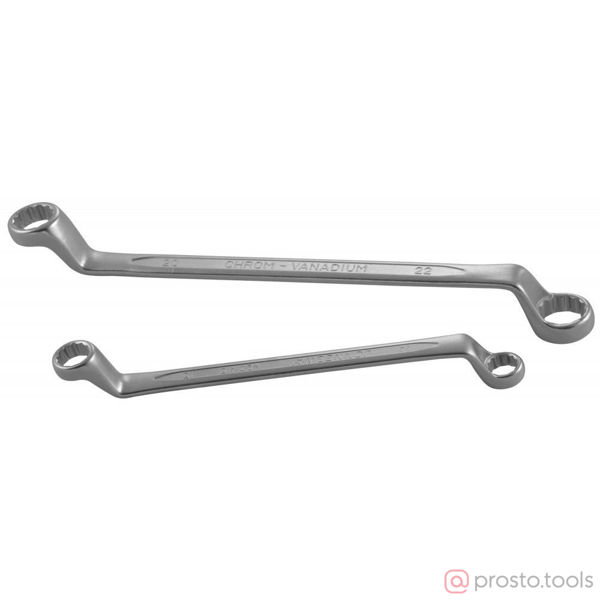 Ключи гаечные кольцевые двусторонние коленчатые, более известные потребителям как накидные или просто кольцевые ключи – гаечные ключи, имеющие округлую форму рабочей части, что позволяет при проведении работ по откручиванию или закручиванию охватывать крепежное соединение со всех сторон. Тем самым, накидные ключи незаменимы при работе с тугими крепежными соединениями, позволяют за счет своей формы прилагать большие усилия, чем при работе с рожковыми ключами, имеющими только две грани контакта с гайкой или болтом, что и обуславливает популярность и востребованность кольцевых ключей на рынке. Область применения Универсальные гаечные ключи. Применяются в качестве основного ручного инструмента при проведении работ с высоконагруженными резьбовыми соединениями. Изогнутая рабочая часть облегчает применение ключей в труднодоступных местах. Изготовлены в соответствии со стандартом DIN 838 из хромованадиевой стали, закалены, имеют хромоникелевое покрытие, полностью соответствуют ГОСТ 2838-80.