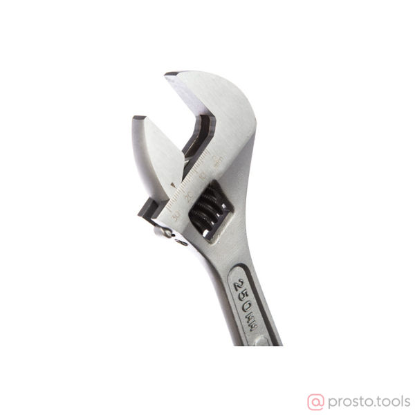 Разводной гаечный ключ с зауженными губками. Прецизионно изготовленные детали механизма перемещения подвижной губки обеспечивает минимальные рабочие зазоры и плавную регулировку. Ключ изготовлен из хромованадиевой стали по стандарту DIN 3117, ANSI/ASME B107.8M, полностью соответствует ГОСТу 7275-75. Имеет хромоникелевое покрытие и матовую отделку, снабжен метрической и дюймовой размерными шкалами. Область применения Универсальный инструмент, исключительно широко используемый как в быту, так и в профессиональной сфере – мастерских, эксплуатационных и ремонтных организациях, хозяйственных подразделениях промышленных предприятий. Главное отличие разводного ключа от обычного рожкового – подвижность его губок, благодаря чему можно легко изменять размер между зажимами, подкрутив гайку на корпусе инструмента. Вследствие этого своего преимущества, разводной ключ способен заменить значительную часть линейки обычных рожковых ключей, что, с одной стороны, позволяет потребителю существенно сэкономить, а с другой – обеспечивает ему большее удобство при транспортировке (переноске) и хранении инструмента. Разводные ключи используются для завинчивания и отвинчивания гаек и других резьбовых соединений, включая вентили. Сфера их применения очень широка – осуществление разного рода ремонтных и монтажных работ слесарного и сантехнического профиля, техническое обслуживание автомобилей и другой техники, бытовых технических устройств, труб и радиаторов отопления.