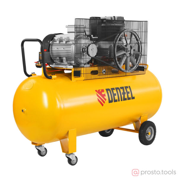 Воздушный компрессор Denzel BCI5500-T/270 58129 мощностью 5,5 кВт, с ресивером объемом 270 л, сжимает 850 литров воздуха в минуту и подает его к пневмоинструменту. К компрессору можно подключить пневмодрель, пневмогайковерт, пневмостеплер, пневмошуруповерт и другое оборудование. Благодаря ременному приводу он легко выдерживает интенсивные нагрузки, поэтому его можно использовать на строительной площадке или в автомастерской. Увеличенный ресивер обеспечивает большой запас сжатого воздуха, что позволяет уменьшить частоту включений мотора и снизить нагрузку на компрессор.