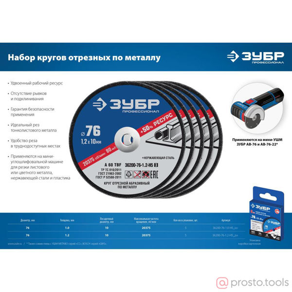 Круг отр. арм. 76х1,2х10,0 по металлу (5шт) //ЗУБР