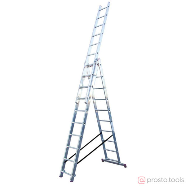 Лестница 3-х секционная алюминиевая 10 ступеней (3х10) с функцией лестничных пролетов CORDA //Krause