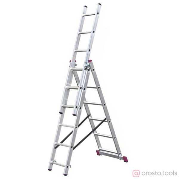 Лестница 3-х секционная алюминиевая 6 ступеней (3х6) с функцией лестничных пролетов CORDA //Krause