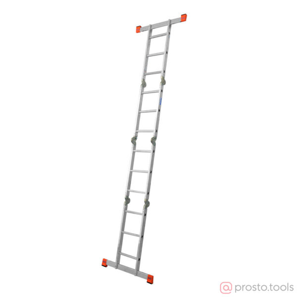 Четырехсекционная универсальная алюминиевая шарнирная лестница: применяется как двусторонняя стремянка, как приставная лестница и как рабочая платформа Легко и быстро складывается, умещается в багажнике автомобиля Запатентованная система шарниров-фиксаторов KRAUSE с дужкой для одновременного привода в действие обоих шарниров одной рукой Две широкие поперечные траверсы с двухкомпонент-ными заглушками увеличивают опорную площадь Противоскользящие двухкомпонентные опорные за-глушки: твердый материал обеспечивает прочное со-единение с боковиной, мягкий материал обеспечивает надежное сцепление с опорной поверхностью и препятствует нежелательному скольжению лестницы