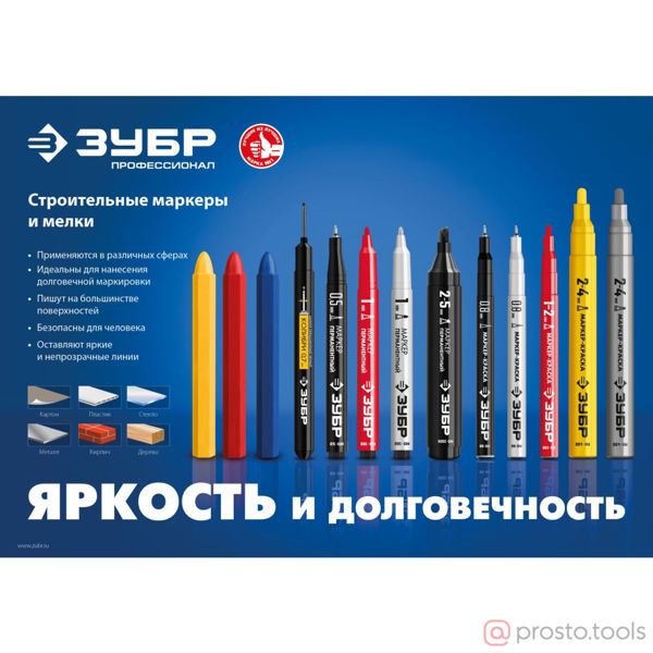 Универсальный маркер с жидкой быстросохнущей краской подходит практически для любой поверхности. Практичеcки безопасен для человека, поскольку не имеет в составе токсичных веществ, таких как ксилол. Данный маркер не смывается водой, не выгорает на солнце и устойчив к температурным перепадам.