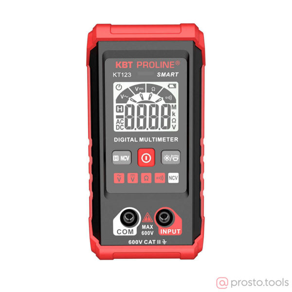 Компактный цифровой мультиметр с автоматическим выбором режимов и пределов измерений Параметры измерений: постоянное напряжение: 4 В – 600 В переменное напряжение: 4 В – 600 В сопротивление: 4 кОм – 40 МОм Основные функции и особенности: SMART AUTO RANGE DATA HOLD «прозвонка» NCV Разрядность дисплея: 4000 отсчетов Количество измерений в секунду: 3 Функция подсветки рабочей области Автоматическое отключение питания через 15 минут Батарейки: 1.5 В ААА, 2 шт. Вес с батарейкой: 120 г Габариты: 118х60х29 мм В комплекте: мультиметр, измерительные щупы, батарейки, инструкция