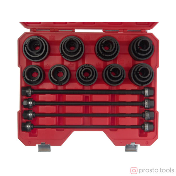 Универсальный набор используется для снятия и установки сайлентблоков и резиновых втулок.