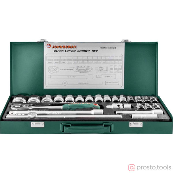 Набор головок 1/2" 8-34 мм 6 гр. 24 пред. с трещоткой S04H4724S //JONNESWAY