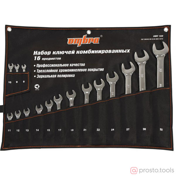 Инструменты, входящие в комплектацию наборов OMBRA, полностью соответсвуют требованиям ГОСТа, а также отвечают высоким международным стндартам качетсва. Оптимальная комплектация наборов, эргономичный, яркий дизайн инструмента и упаковки, высокое качество материалов, используемых при производстве, порадуют даже самого взыскательного потребителя. При производстве работ по обслуживанию продукции машиностроения используются различные размеры резьбовых крепежных деталей и мастеру в этой ситуации необходимо иметь несколько инструментов, необходимых для выполнения такой работы. При этом извлечение требуемого ключа из, скажем, кармана комбинезона не всегда доставляет требуемый результат и чем больше обслуживаемых размеров, тем выше вероятность ошибки. В таком случае, необходим набор ключей, где каждый ключ имеет отдельный, маркированный по размеру, карман в мягком планшете, именуемом «скруткой», изготовленном из устойчивого к истиранию, пропитанного для защиты от влаги и загрязнений материала. Подбор инструмента, его хранение и транспортировка такое предложение достаточно просто решает. Область применения Ключи гаечные комбинированные ключи – универсальные гаечные ключи, совмещающие в себе функционал и преимущества рожковых и накидных ключей. Зевы комбинированных ключей имеют одинаковые размеры. Именно сочетание сильных сторон рожковых и накидных ключей и нивелирование сторон слабых делают комбинированные ключи исключительно широко востребованными со стороны потребителей и применяемыми в самых разных сферах – производственной, ремонтной, авторемонтной, бытовой и других. Ключи гаечные с открытым и кольцевым зевами предназначены для монтажа либо демонтажа резьбовых соединений.