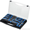 Расширенный набор слесарных отверток в компактном транспортировочном кейсе Материал стержня - сталь Cr-Mo Твердость шлица превышает требования ГОСТ Черненный магнитный наконечник помогает при работе в труднодоступных местах Мощная двухкомпонентная рукоятка обеспечивает надежный и комфортный хват Удобный кейс для хранения отверток
