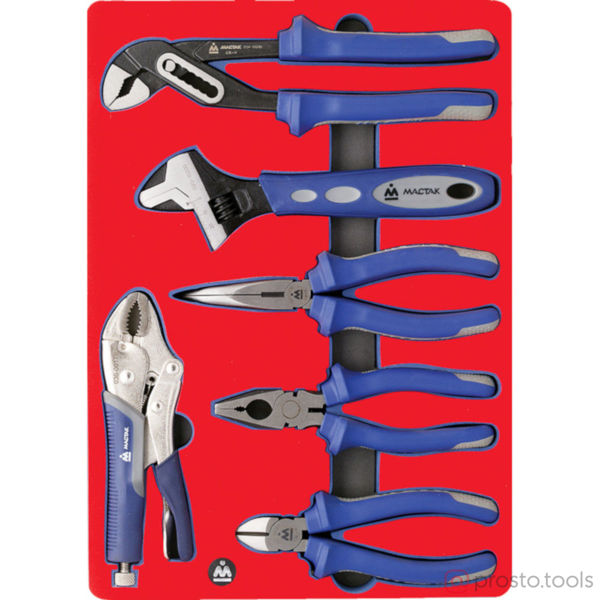 Набор инструментов 6 предметов пассатижи, разводной ключ Мастак 5-3006 в ложементе из материала EVA предназначен для комплектации передвижных инструментальных тележек или слесарных верстаков при создании индивидуальных рабочих мест на станциях технического обслуживания автомобилей и других предприятиях, занимающихся обслуживанием и ремонтом различной техники.