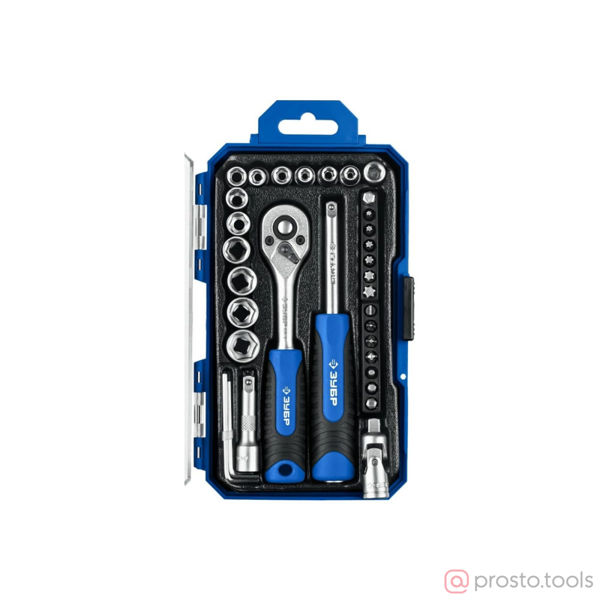 Универсальный набор инструмента ЗУБР Профессионал Компакт-35, 35 предметов 27642-H35_z01 представляет собой профессиональный набор инструмента для монтажных, ремонтных и строительных работ. Инструмент выполнен из высококачественной хромованадиевой стали, что обеспечивает прочность, стойкость в износу и долгий срок службы. Хромированное покрытие защищает инструмент от коррозии. Набор поставляется в удобном пластиковом кейсе для рационального хранения и транспортировки. Комплектация Головки торцовые 1/4", 4, 4,5, 5, 5,5, 6, 7, 8, 9, 10, 11, 12, 13 - 12 шт; Трещотка 1/4", 72 зубца - 1 шт; Вороток-отвертка 1/4" - 1 шт; Шарнир карданный 1/4" - 1 шт; Удлинитель 1/4", 50 мм - 1 шт; Ключи имбусовые, 1,27, 1,5, 2, 2,5 мм - 4 шт; Переходник для бит, SQ1/4" x HEX1/4' - 1 шт; Биты SL5, PH1, PH2, PH3 - 4 шт; Биты HEX, H3, H4, H5, H6 - 4 шт; Биты TORX, T10, T15, T20, T25, T30, T40 - 6 шт.