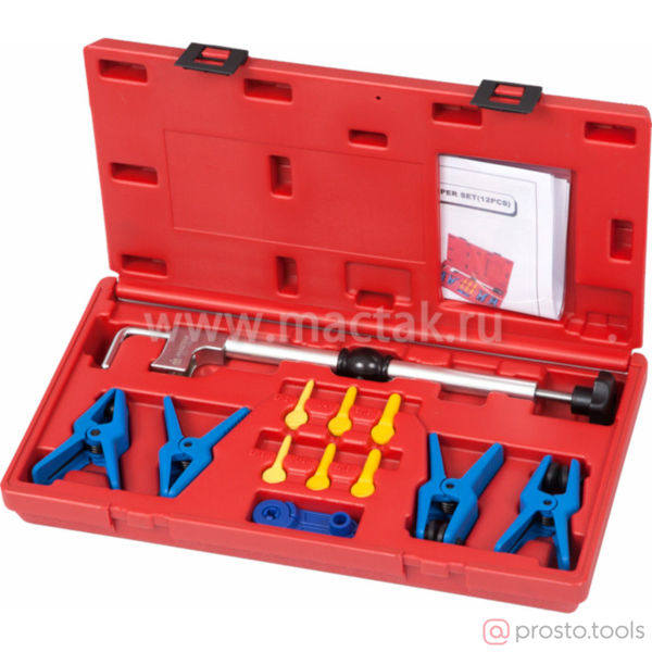 Набор заглушек для патрубков с металлическими наконечниками, зажим, кейс, 12 пред. (МАСТАК)