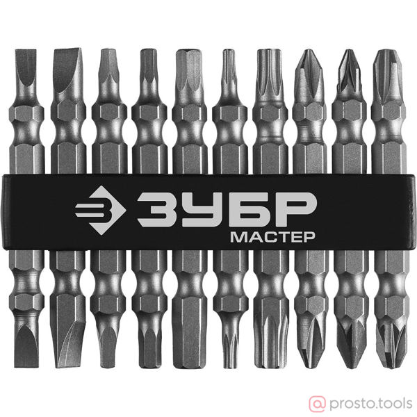 Набор ЗУБР: Биты длинные "МХ-10", Cr-V, двусторонние для шуруповерта в держателе