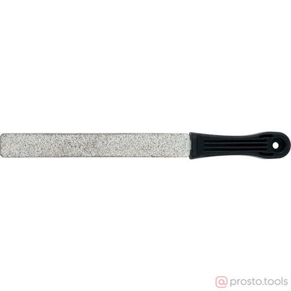 Напильник предназначен для качественной обработки плоских особо твердых поверхностей. Напильник изготовлен из углеродистой стали и имеет специальное карбидное напыление. Поставляется в комплекте с эргономичной полипропиленовой рукояткой, покрытой мягким эластомером.