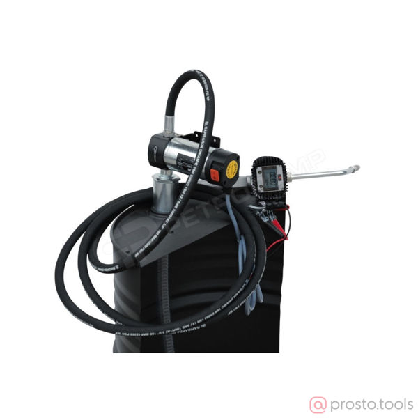 Простое быстрое соединение с металлической бочкой на 2". Имеется телескопическая всасывающая трубка для прямой установки на емкость (бочку) и держатель для топливораздаточного пистолета, расположенный рядом с насосом, сверху. Снабжен расходомером для контроля количества отпускаемого топлива.
