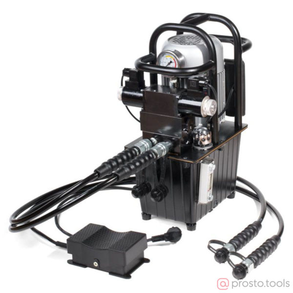 Создание давления рабочей жидкости при работе с исполняющим гидравлическим инструментом Тип инструмента: электрогидравлический Объем маслобака, л: 0.5 Клапанов: 2 Функция удержания давления: 1 Длина РВД, м: 1.8 Наличие клапана АСД: 1 Используемое напряжение, В: 230 Особенности конструкции: двухступенчатое нагнетание давления|ножной пульт управления|индикатор уровня масла|встроенный термометр|встроенный манометр|максимальное давление 700 бар (70 Мпа)