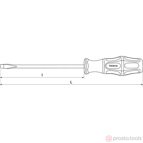 Отвертка стержневая шлицевая, SL3х100 мм. Отвертки Thorvik изготовлены в соответсвии с требованиями стандарта DIN 5262, отвечают техническим условиям ГОСТ 17199-88. Изделия комплектуются высококачественными стержнями из хромованадиевой стали. Намагниченные рабочие части отверток в состоянии удерживать крепеж, что очень часто помогает при работе в труднодоступных местах. Эргономичные двухкомпонентные рукоятки удобно лежат в руке. Мы предлагаем несколько типов отверток Thorvik, которые применяются для работы с резьбовыми крепежными деталями с внутренними рабочими профилями: шлиц прямой, Phillips (крест), Pozidriv. По конструкции отвертки можно разделить на инструменты со скрытой установкой стержня в рукоятке, отвертки со сквозной установкой стержня, имеющие стальной тыльник и шестигранник под ключ, диэлектрические отвертки. Размеры Артикул Длина шлица, мм Толщина шлица, мм l, мм L, мм Вес, кг SDL3100 3 0,5 100 182 0,03