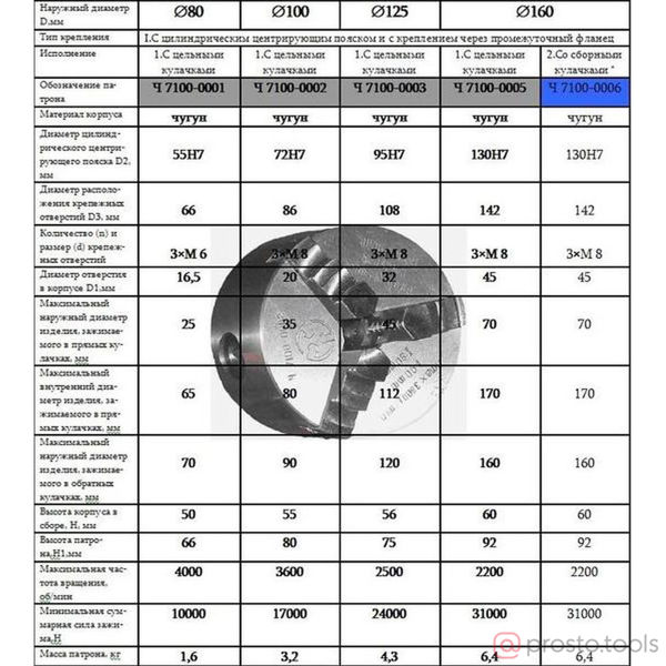 Патрон ток. 3-х кулачковый 160мм 7100-0005П (аналог Гродно) //CNIC