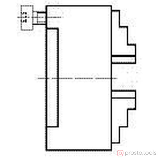 Патрон самоцентрирующий с цилиндрическим центрирующим пояском d=160H7 и с креплением через промежуточный фланец (планшайба), материал чугун с шаровидным графитом, вес 17.5кг, крепление 6 болтов М10мм, с комплектом прямых и обратных кулачков. Крепление патрона на шпиндель по DIN 6350 через промежуточный фланец. Шаг рейки (кулачка) - 8мм