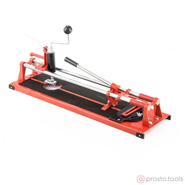 Предназначен для резки керамической кафельной плитки толщиной до 16 мм и длиной от 400 до 600 мм (в зависимости от модели). Режущим элементом является ролик из твердого сплава ВК-8. Направляющие изготовлены из высококачественной инструментальной стали с антикоррозионным покрытием. Дополнительное приспособление балеринка позволяет вырезать отверстия в плитке диаметром до 80 мм. Поворотный угольник-угломер позволяет резать плитку под углом до 45 градусов, а также регулирует размер и дополнительно фиксирует отрезаемую заготовку.