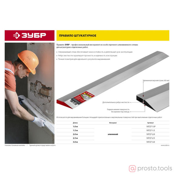 Правило ЗУБР - профессиональный инструмент из особо прочного алюминиевого сплава для штукатурно-отделочных работ