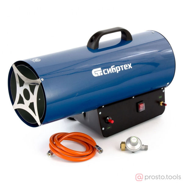 Газовая тепловая пушка Сибртех СТГ-50 предназначена для прогрева нежилых помещений: цехов, складов, строящихся зданий, автомастерских, промышленных теплиц, а также просушивания бетона, размораживания земли под траншеи и других ремонтно-строительных работ. Теплогенератор обладает тепловой мощностью 50 кВт и расходом воздуха до 1400 м3/ч.В качестве топлива модель СТГ-50 использует пропан или бутан, расходуя его очень экономно. Затраты на отопление будут ниже в сравнении с использованием других типов обогревателей.ПреимуществаВ случае разогрева теплогенератора до максимальной безопасной температуры, термозащита отключит подачу газа и остановит работу пушки, защищая генератор от перегрева или возникновения пожара.Прочный стальной корпус окрашен термостойкой краской для предотвращения коррозии.Передняя решетка сделана из нержавеющей стали, поэтому ей не страшны даже длительные воздействия тепла и влаги.Задняя решетка не допускает попадания в вентилятор и другие компоненты посторонних предметов.Влагозащитный кожух на выключателе электропитания защищает его от загрязнения и попадания внутрь влаги.Удобно транспортировать — на верхней части корпуса предусмотрена рукоятка, поэтому пушку легко переносить и загружать в автотранспорт.Устойчивая подставка с большой опорной площадью упрощает размещение тепловой пушки на рабочем месте.В комплект поставки включены газовый редуктор со шлангом и сетевая вилка, это позволяет приступить к использованию сразу после приобретения пушки и газовых баллонов.