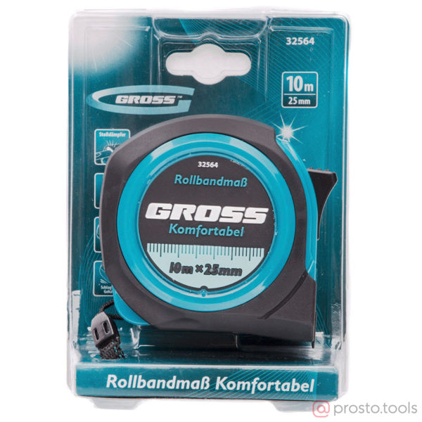 Рулетка 10м*25мм Komfortabel, обрезиненный корпус //GROSS