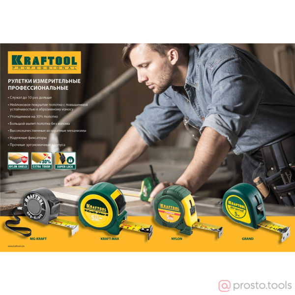 Рулетка 8м*25мм GRAND, обрезиненный пластиковый корпус //KRAFTOOL