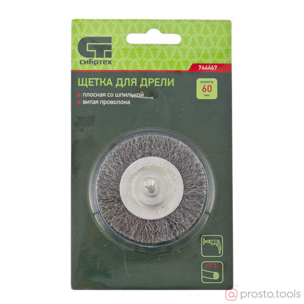 Щетка для дрели дисковая 60мм витая стальная проволока 0,3 мм //СИБРТЕХ