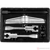 Захваты съемника выкованы из качественной инструментальной стали, что обеспечивает долгий срок службы при работе с высокими нагрузками. Позволяет работать с широким рядом узлов