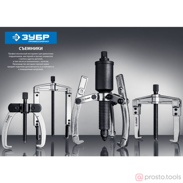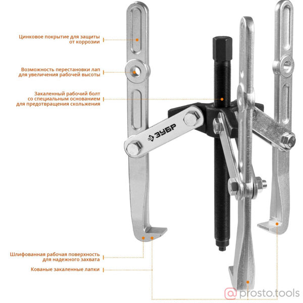 Захваты съемника выкованы из качественной инструментальной стали, что обеспечивает долгий срок службы при работе с высокими нагрузками. Позволяет работать с широким рядом узлов