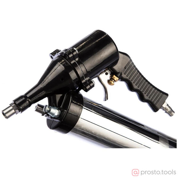 Шприц плунжерный пневматический 400мл 300атм 40:1, полуавтомат, гибкий шланг и стальная трубка //UNI