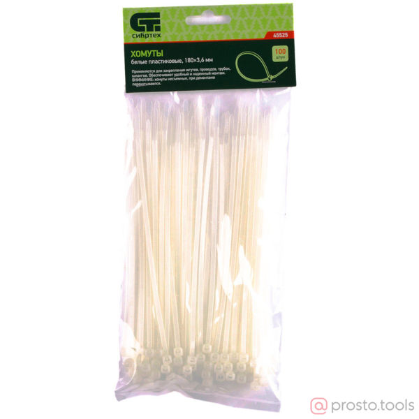 Стяжки кабельные 180х3,6мм 100шт. пластик, белый //СИБРТЕХ