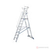 Лестница-стремянка, оборудованная большой платформой и дугой безопасности Алюминиевая лестница-стремянка, в которой оптимально сочетаются безопасность и свобода перемещения. Дуга безопасности и цепь являются главными элементами защищенной со всех сторон большой рабочей площадки Большая площадка (500 х 450 мм) Установленные с двух сторон поручни способствуют безопасности подъема и спуска Прочная траверса со встроенными роликовыми опорами повышает степень устойчивости и способствует легкости перемещения изделия Легко перемещается в собранном состоянии Быстро складывается для транспортировки и хранения, в сложенном состоянии занимает мало места Две алюминиевые планки предотвращают самопроизвольное раздвижение или сложение секций