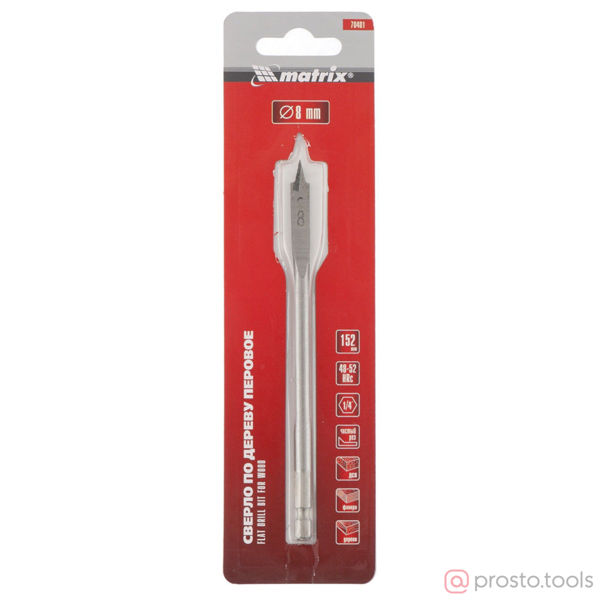 Сверло перовое предназначено для получения отверстий в мягкой и твердой древесине с любым расположением волокон, клееной фанере, ДСП.