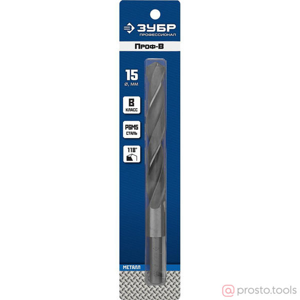 Сверло ЗУБР 29621-15, предназначено для обработки легированных и углеродистых сталей с пределом прочности до 900 Н/мм², цветных металлов, серого чугуна и пластмассы. Качественное сверло с высоким ресурсом. Изготовлено методом винтового проката по ГОСТ 10902-77 и соответствует классу точности "В". Угол заточки 118 градусов позволяет обрабатывать легированные и углеродистые стали.