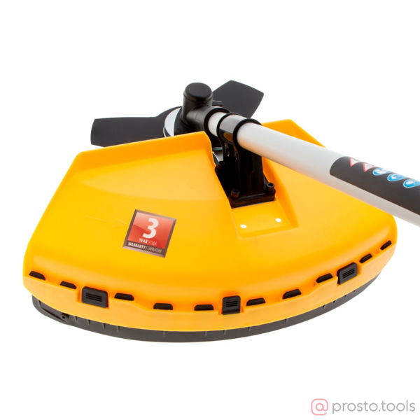 Бензиновый триммер Denzel DR-43 96273 с двигателем объемом 43 см3 и неразъемной штангой состоит из 2 частей и предназначен для ухода за газоном и формирования у него ровных границ, скашивания травы различных типов, в том числе с жесткими стеблями (полынь, крапива, лебеда). Удобен для работы в самых труднодоступных местах — на овражках, вокруг деревьев, вдоль стен и заборов. Эффективное решение этих задач обеспечивают режущие насадки — трехлопастный нож из стали и усиленная катушка из полиамида с леской. Они вращаются со скоростью 9500 об/мин, ширина скашивания составляет 25,5 и 42 см.;Инструмент не нужно включать в розетку, поэтому с ним можно работать в удаленных от дома уголках. Комплект поставки состоит из 2 частей для удобства транспортировки. Редуктор и корпус сцепления уже установлены на штангу, что облегчает его окончательную сборку.