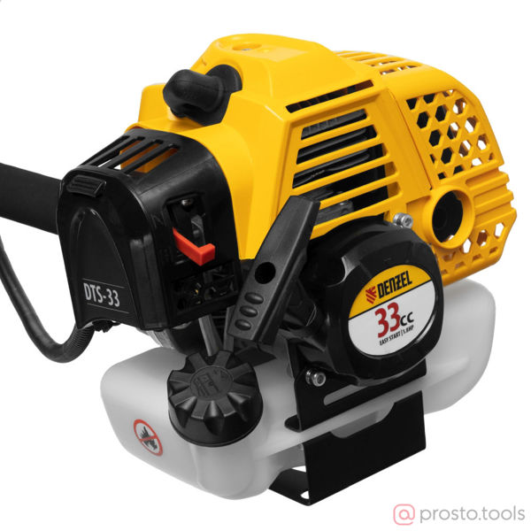 Бензиновый триммер Denzel DTS-33 962115 с двигателем объемом 33 куб. см и неразъемной штангой поставляется комплектом из 2 частей. Усиленная катушка с леской предназначена для скашивания мягкой травы, а трехлопастный нож — для скашивания травы различных типов, в том числе с жесткими стеблями (полыни, крапивы, лебеды). Ширина скашивания леской составляет 42 см, ножом — 25,5 см.;Двухтактный бензиновый двигатель мощностью 1,8 л.с. обеспечивает эффективное решение поставленных задач и полную автономность. Работать можно даже в самых отдаленных участках сада, не заботясь о наличии сети электропитания.