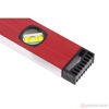 Корпус уровня изготовлен из жесткого прямоугольного алюминиевого профиля. Вес погонного метра – 0,32 кг. Одна его грань фрезерована. Модель имеет три акриловых глазка для проверки отклонений по горизонтали, вертикали и под углом 45 градусов. Точность измерений – 1 мм м (0,057 градуса).
