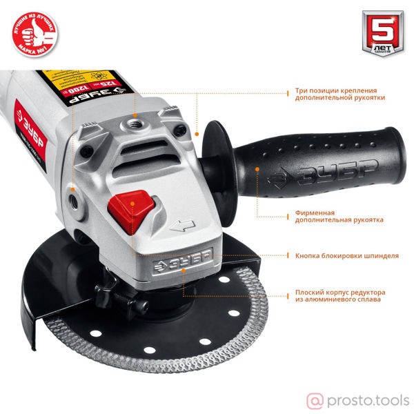 Удобная, мощная машина в компактном исполнении для резки, шлифовки, обдирки и зачистки дома, в гараже, мастерской. Двуручный хват позволяет надежно удерживать ее, регулятор оборотов расположен прямо под пальцем и широкий выключатель для удобства работы. Конструктивные решения, защищающие изделие от пыли (пылезащищенный выключатель и лабиринтные уплотнения подшипников), гарантируют надежную работу инструмента долгие годы
