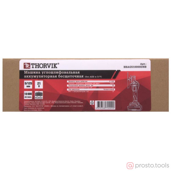 УШМ акк. 125мм 21В (без АКБ и ЗУ) BBAG510000DNB //THORVIK
